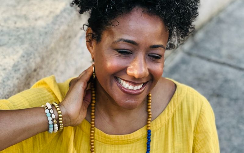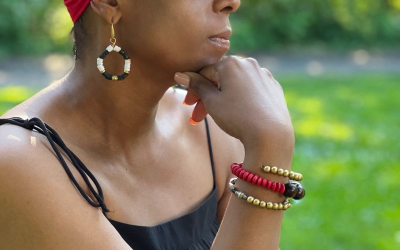 Mid-century modern interiors, art deco architecture, abstract art, period jewelry, and distinct personas, among others, inform artist Nicole Robinson's design process. She enjoys giving new life to forgotten materials, often incorporating refurbished leather, recycled glass beads, and vintage findings. Above all, she creates pieces that feel like you.