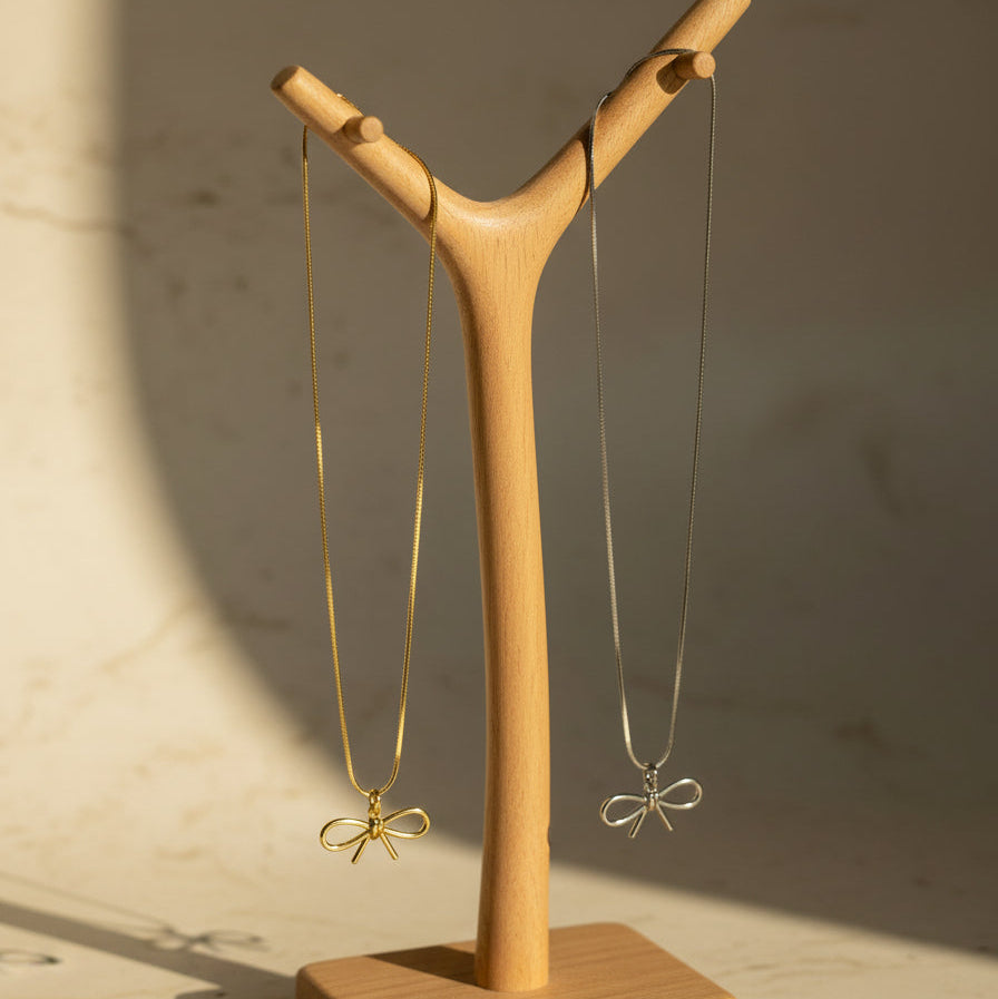 Playful bow necklace—polished, wearable, and anything but predictable.